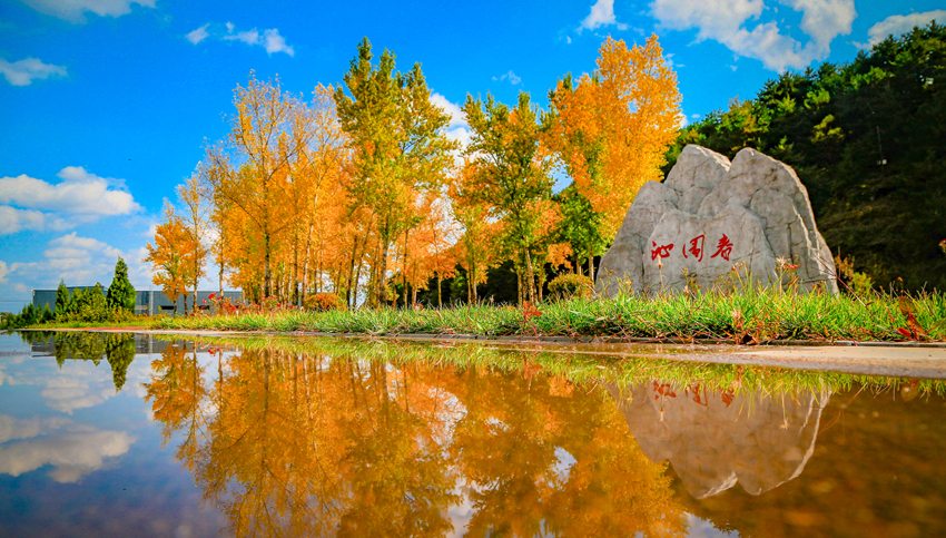 走进位于太行太岳山间的沁园春矿泉水公司,枫叶如火,银杏铺金,松枝缀墨,层林尽染,一步一景。